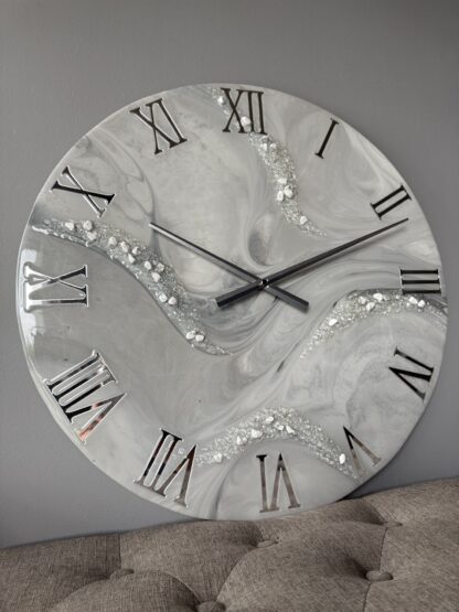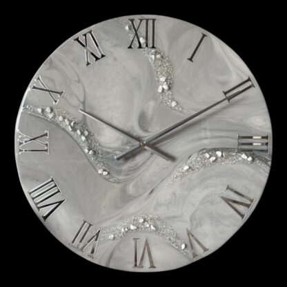 Horloge murale 60cm, tons gris et argenté