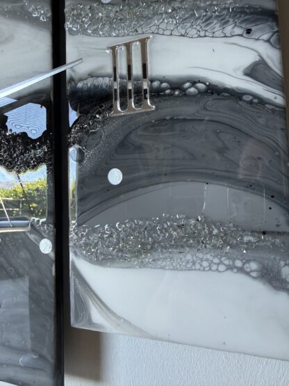Les chiffres sont en acrylique argenté finition miroir.